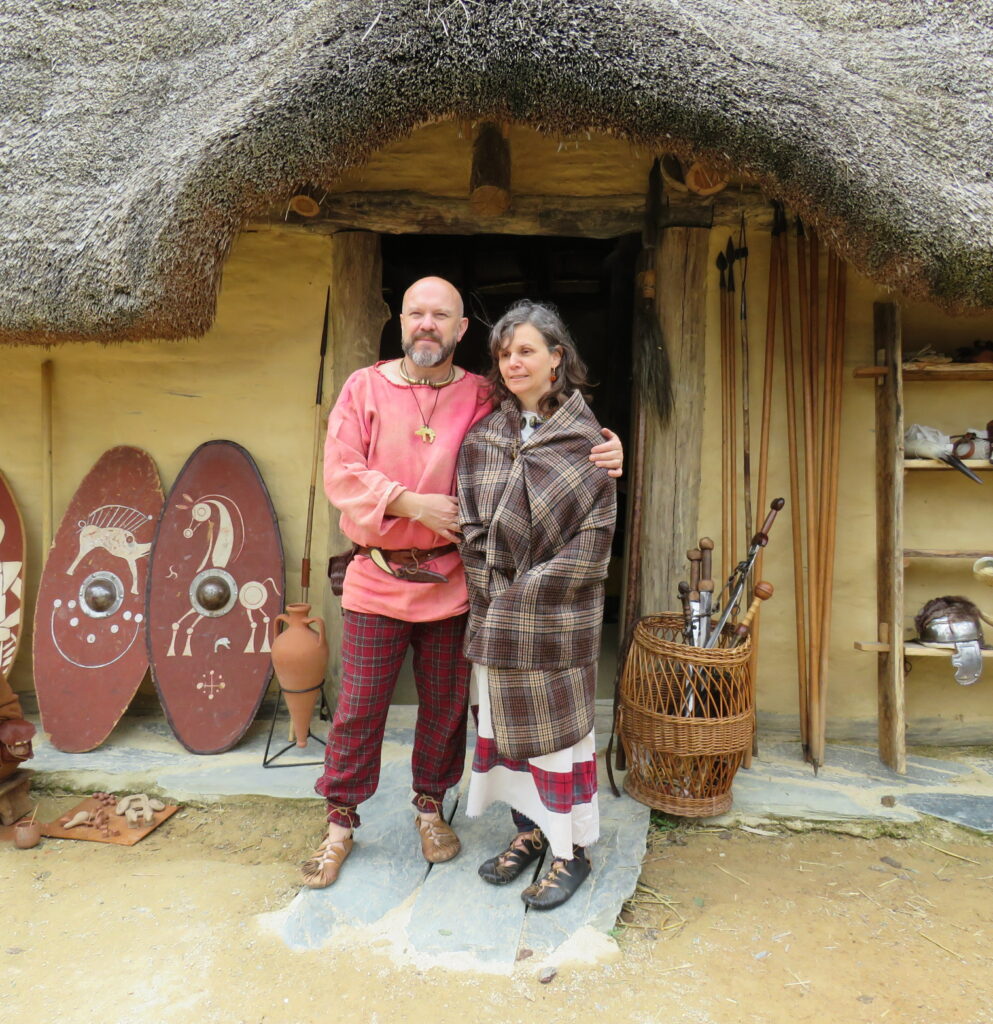 – des évocations d’ateliers d’artisanat gaulois (tissage aux tablettes, travail du cuir, teinture naturelle, production de monnaies gauloises), fabrication d’instruments de musique, sculpture sur pierre et sur bois, fabrication de fibules) ;